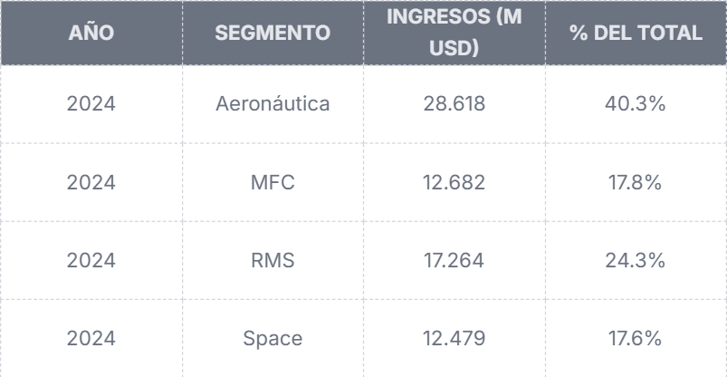 El 73% de sus ingresos proviene del gobierno de EE. UU., principalmente del Departamento de Defensa (DoD). El resto se reparte entre clientes gubernamentales internacionales, canalizados en su mayoría mediante Foreign Military Sales (FMS), donde el gobierno estadounidense actúa como intermediario y reduce el riesgo crediticio.