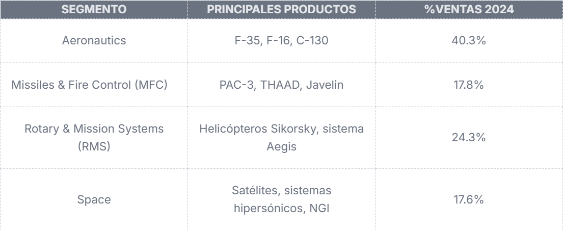 Lockheed Martin es el mayor contratista de defensa del mundo. Su modelo se apoya en una cartera diversificada de sistemas aeroespaciales, misiles, plataformas de combate y programas espaciales estratégicos.